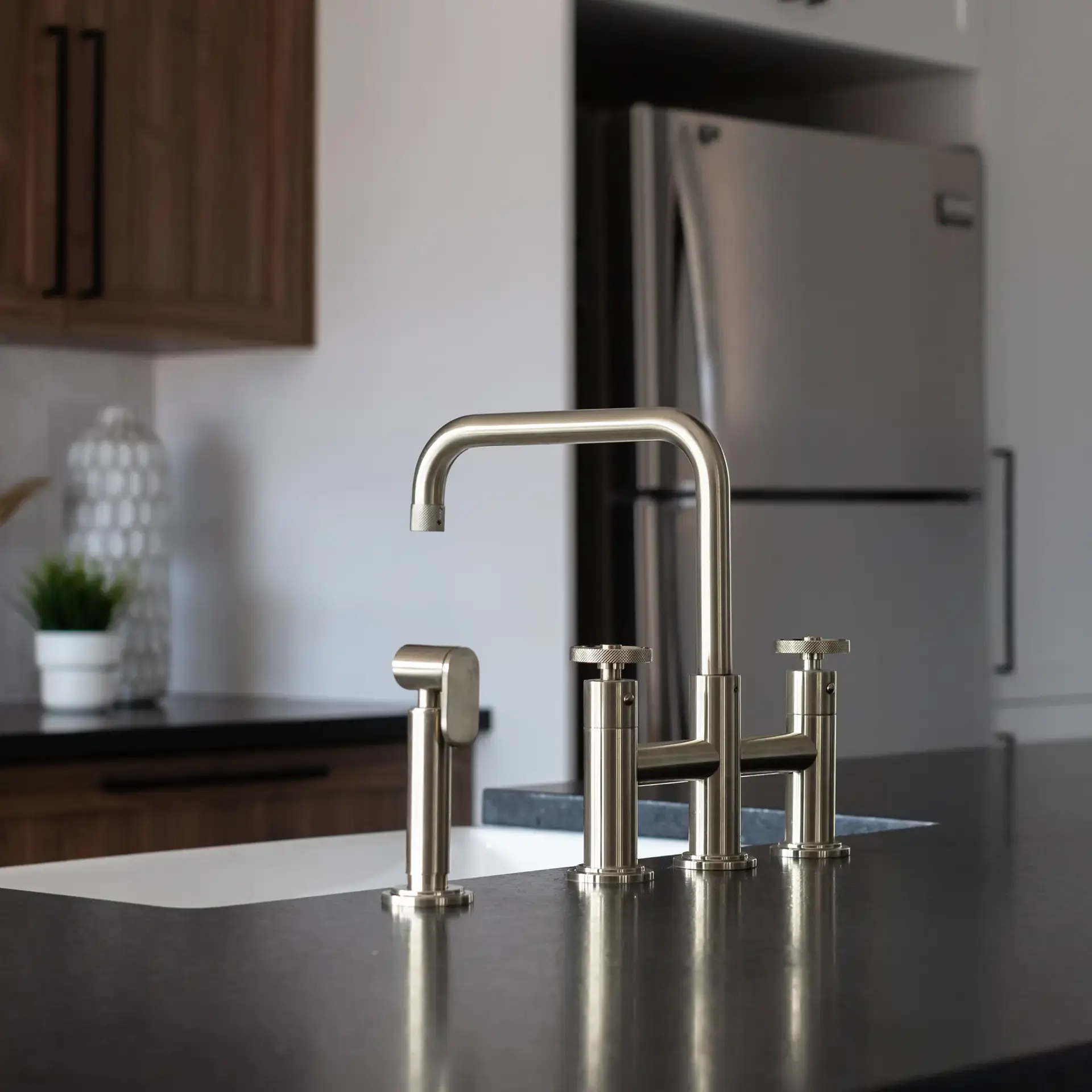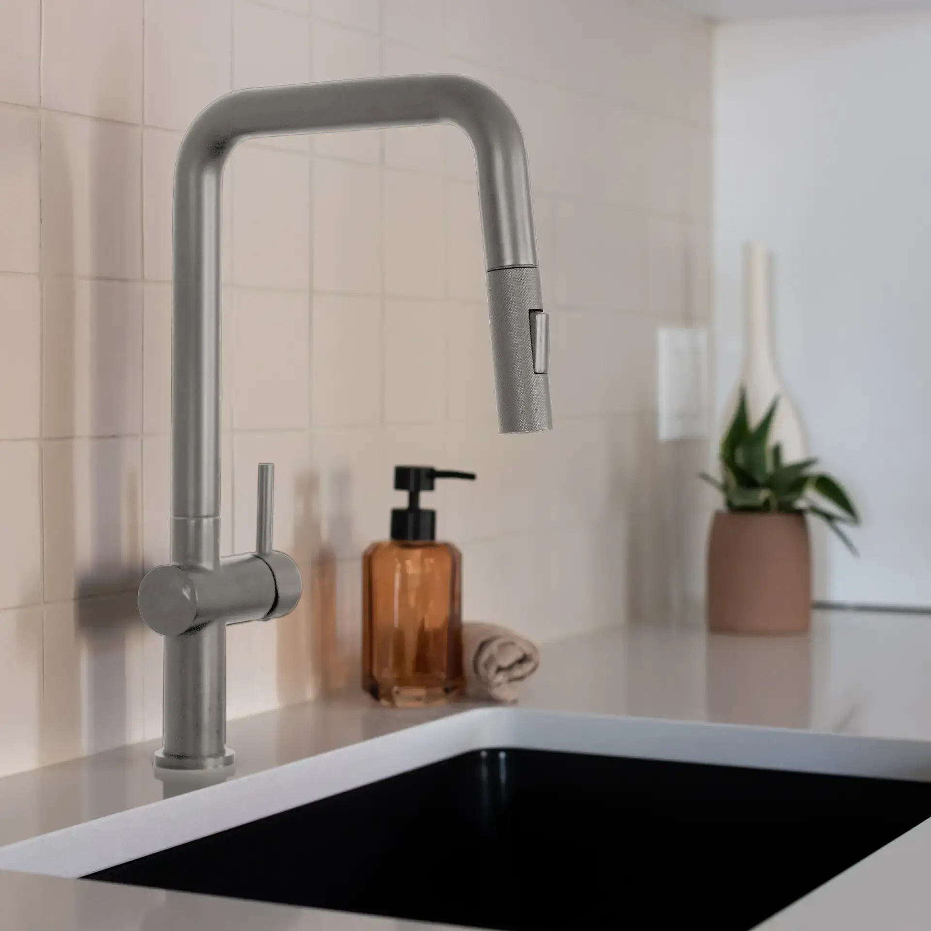onçu en laiton massif avec une finition nickel brossée raffinée, MAURIZIO-BN apporte une touche de sophistication à tout espace culinaire. Son bec rétractable magnétique se déploie en douceur, vous offrant la liberté d’utiliser la douchette flexible avec aisance et précision.